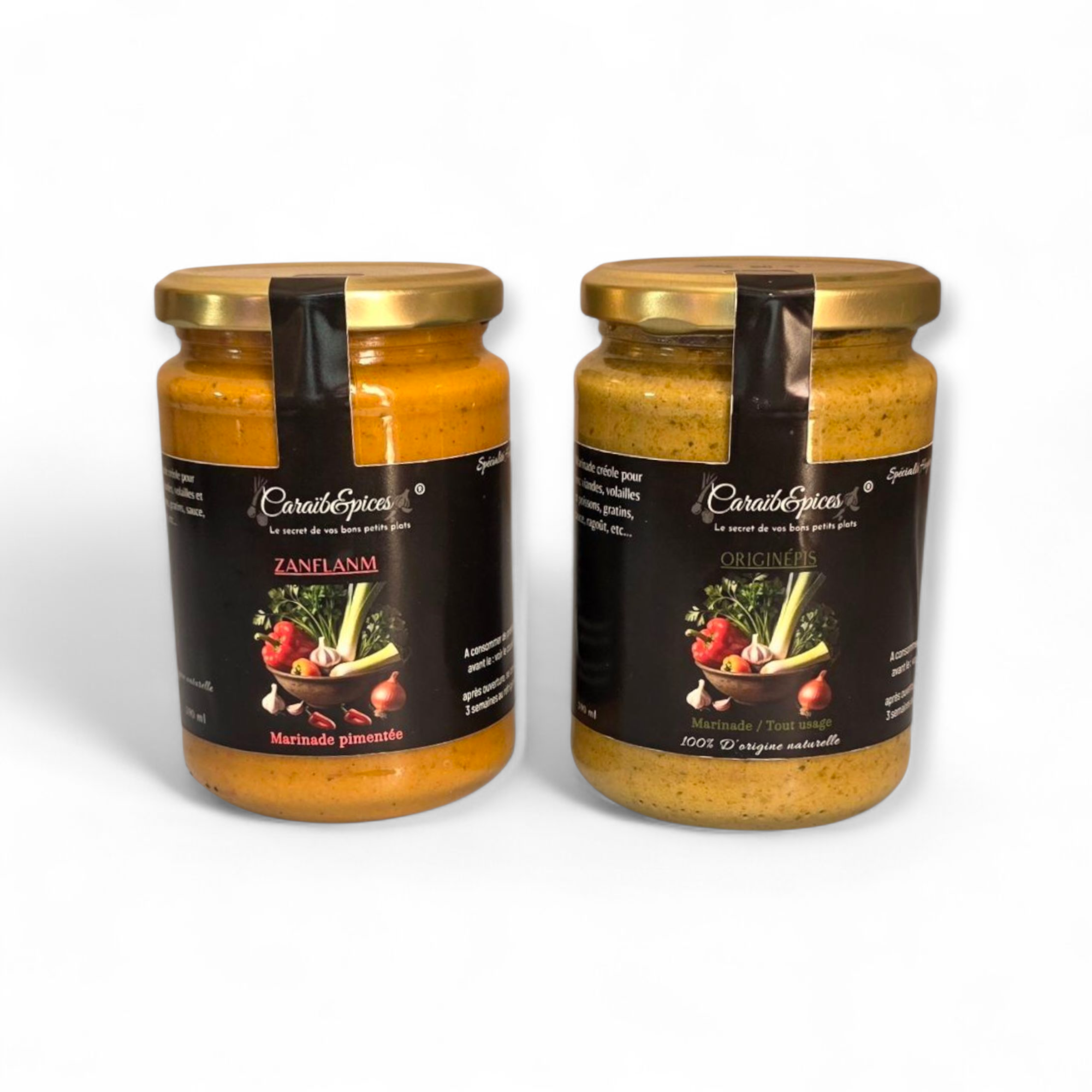 Originépis & Zanflanm, ce sont deux recettes artisanales d’épices liquides inspirées des traditions créoles. Préparées avec soin à partir de légumes, herbes fraîches et huiles végétales, elles vous simplifient la vie en cuisine tout en sublimant vos plats du quotidien.
