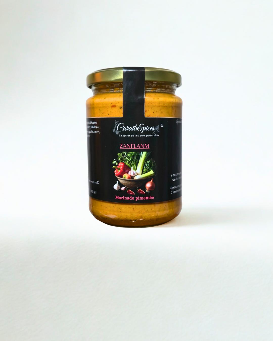 Zanflanm, c’est l’épice liquide qui donne vie à vos plats. Préparée avec des légumes frais, du piment, du gingembre et une touche de paprika, elle relève vos recettes sans les masquer. Une recette artisanale, équilibrée, pour celles et ceux qui aiment le goût vrai avec un petit coup de chaud.
