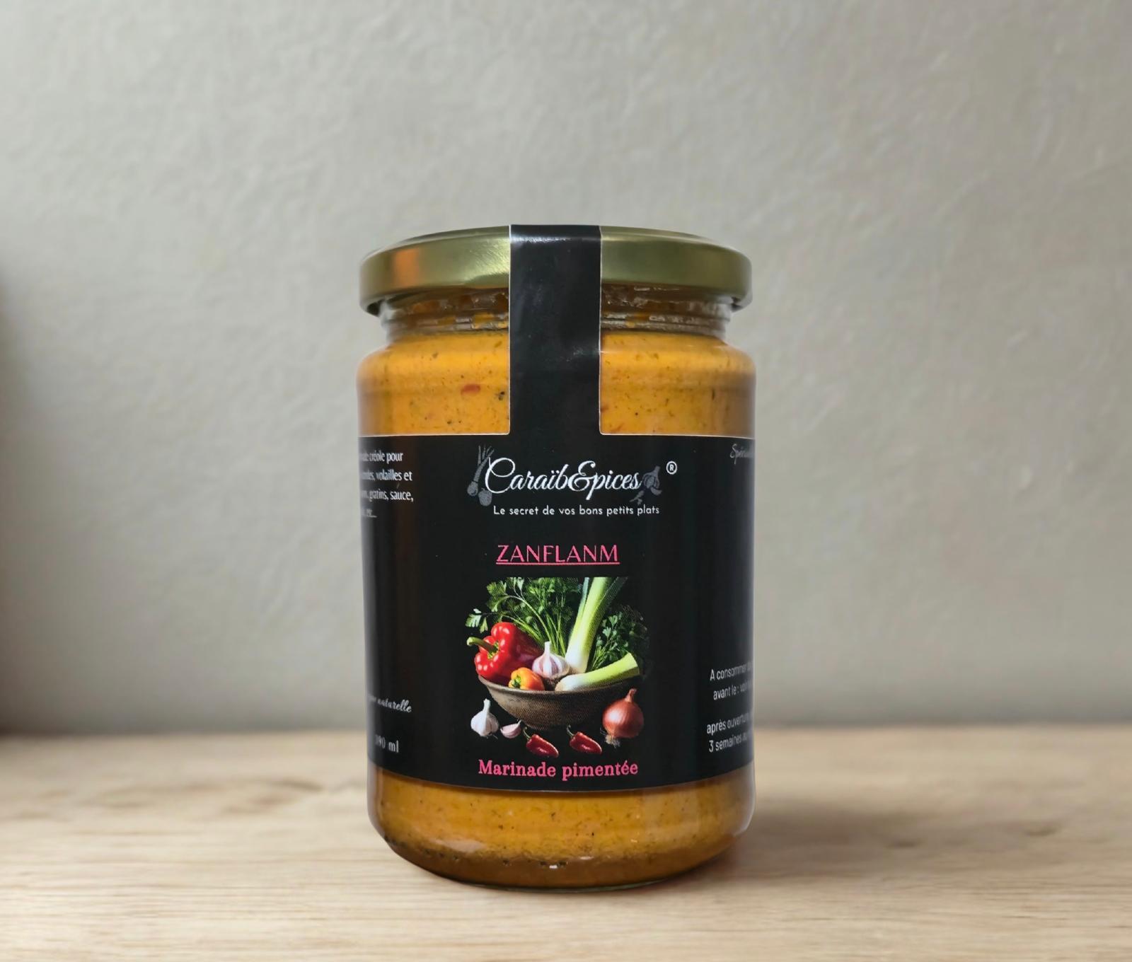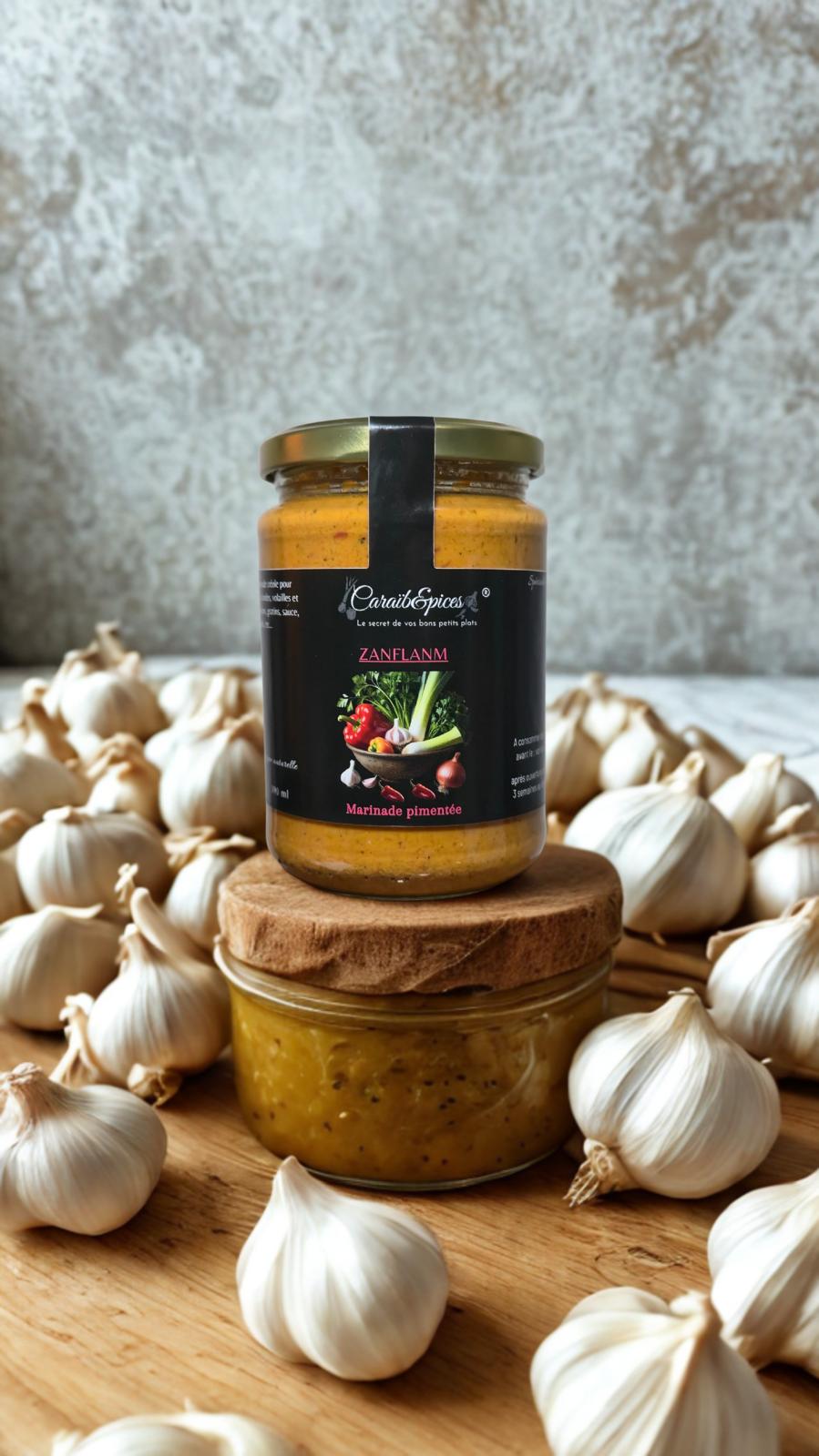 ● Poivron rouge ● Oignon violet ● Huile de colza ● Huile de tournesol ● Ail ● Poireau ● Poivron vert ● Oignon jaune ● Persil ● Piment antillais ● Sel ● Gingembre ● Paprika ● Piment végétarien ● Cube Maggi ● Thym ● Poivre noir ● Acide citrique (E330)